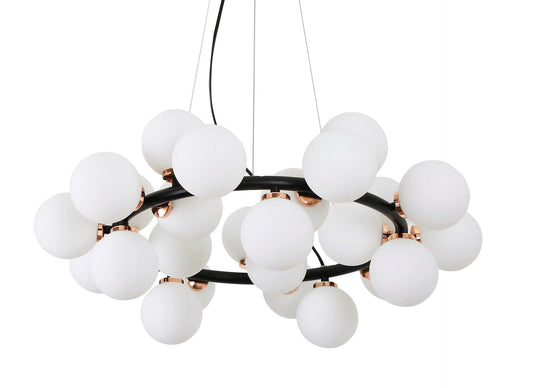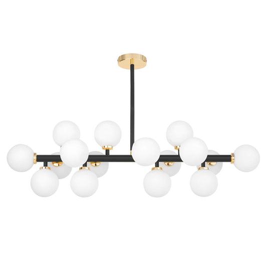 Die Präsentationsfähigkeit der MARSIADA-Kollektion ist vor allem auf die fantastischen Designs zurückzuführen, die Perfektionismus mit der Schönheit der im Modell verwendeten Farbkombinationen zum Ausdruck bringen. Hier sehen wir das Nebeneinander von angenehmem Messing, voller Wärme, aber auch Eleganz, mit dem milchig weißen Glasschirm, aus dem die Lampenschirme gefertigt sind. Ihre erstaunliche Anzahl machte es möglich, eine Lampe mit vielen Eigenschaften zu schaffen – funktional aufgrund der starken Lichtmenge, aber auch dekorativ – durch die interessante Einarbeitung von Glaskugeln in den Metallrand. Ihre Anordnung ist kein Zufall. Hier herrscht ein kontrollierter Chaoseffekt, der die Innovation des Produkts bestimmt. Ein nützliches Detail ist außerdem ein transparentes, verstellbares Kabel, das durch Anpassung seiner Einstellungen den Zweck, die Funktion oder das Aussehen der Pendelleuchte verändern kann. Das Ganze wird oben mit einem runden Messinghimmel abgeschlossen, der wiederum auf den unteren Teil des Produkts abgestimmt ist. Die Marsiad-Lampenkollektion ist in verschiedenen Farben erhältlich, darunter elegantes Gold, dezentes Messing, vielseitiges Schwarz, modernes Chrom und eine luxuriöse Kombination aus Schwarz und Gold.