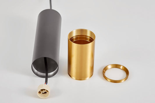 MODERNE SCHWARZ-GOLD-ROHR-PENDELLAMPE LINEO W1